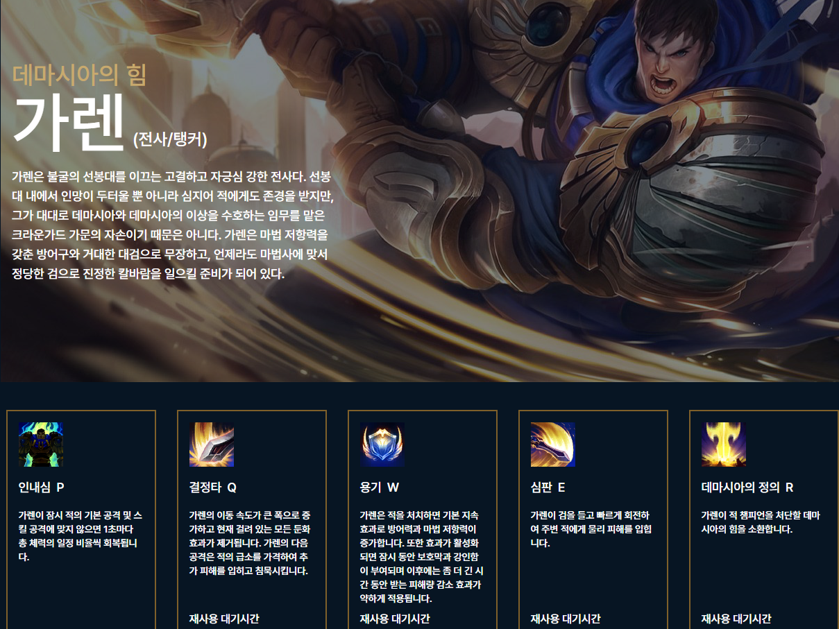 - 챔피언의 상세 정보를 확인할 수 있다. (챔피언 정보, 스킬, 스킨 등)