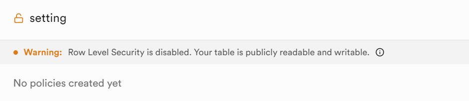 supabase의 `RLS 정책`이 설정되어있기 때문이다. 인가된 유저가 요청하는 경우에 한해서만 데이터가 정상적으로 불러와지게 된다. 따라서 일단 임시로 `RLS정책을 비활성화(Disable)`함으로 해결 했다.
