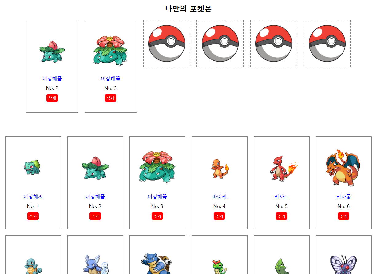 - 포켓몬 데이터 목록을 이용하여 나만의 포켓몬을 추가/삭제할 수 있다.